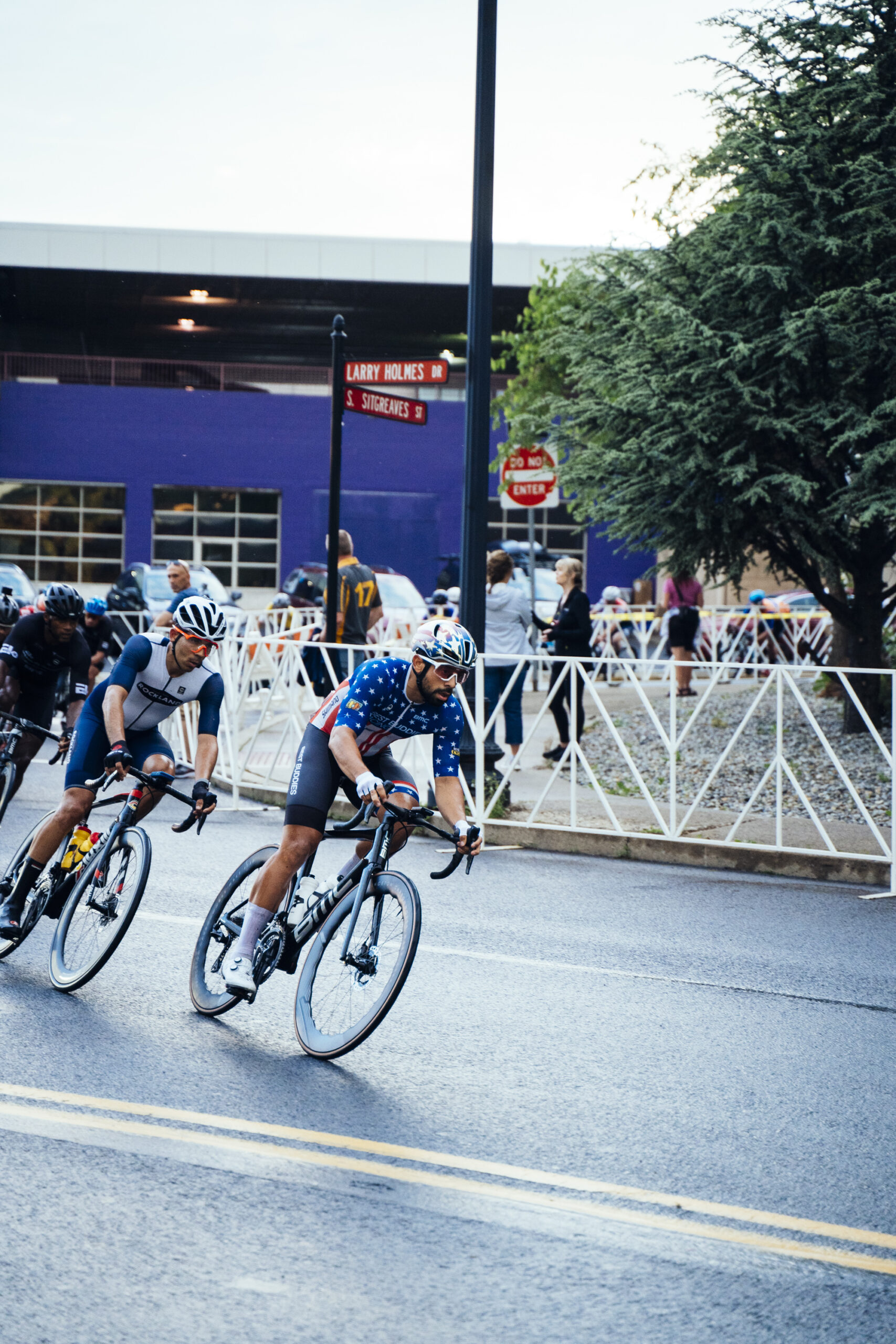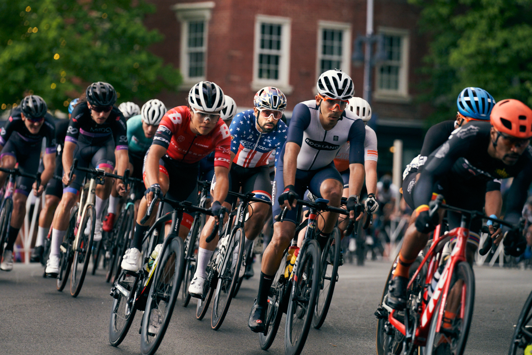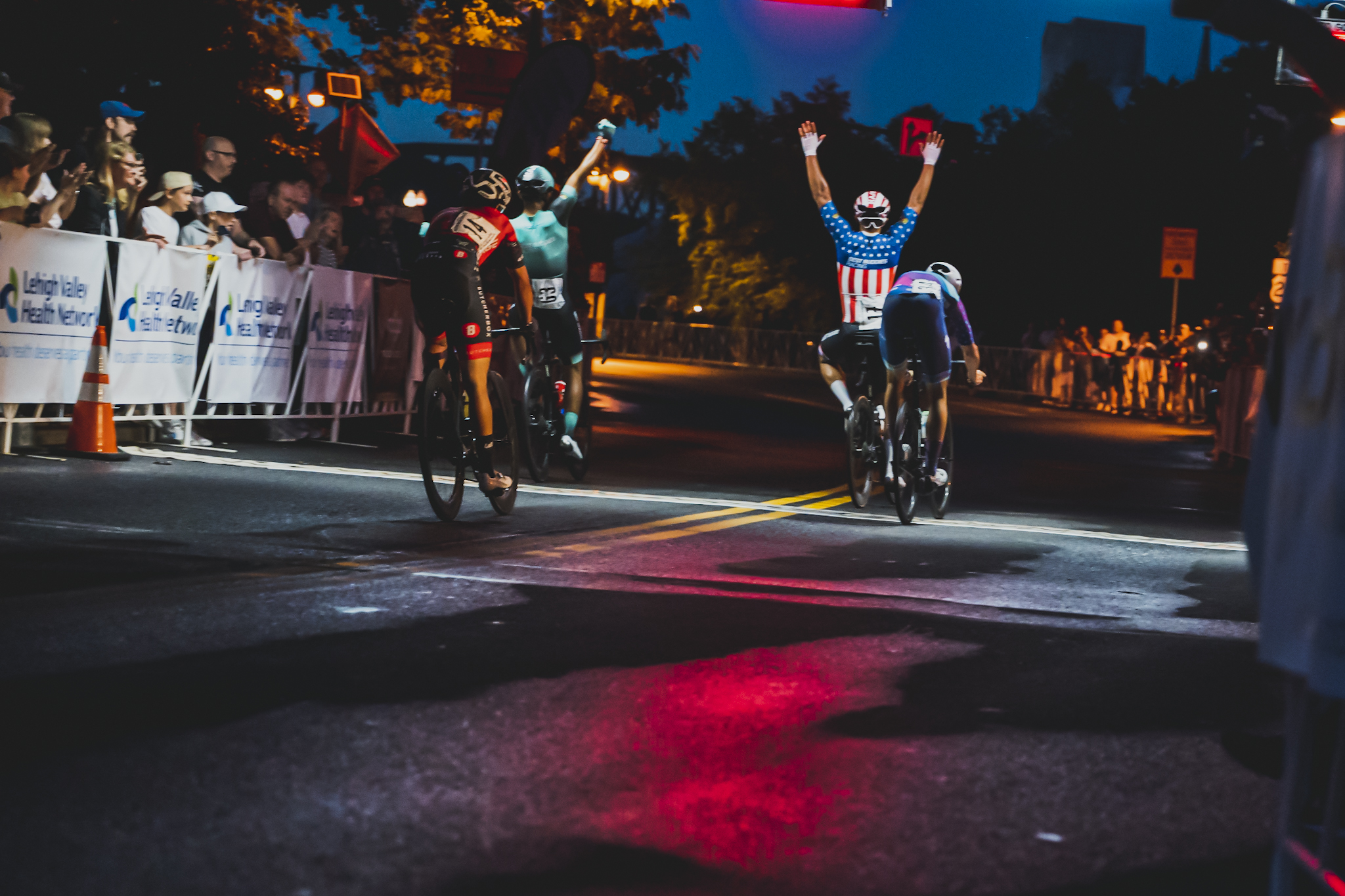 - Danny Estevez in the National Champion’s kit in the Easton Twilight Criterium. Photo by Vishrut Garg