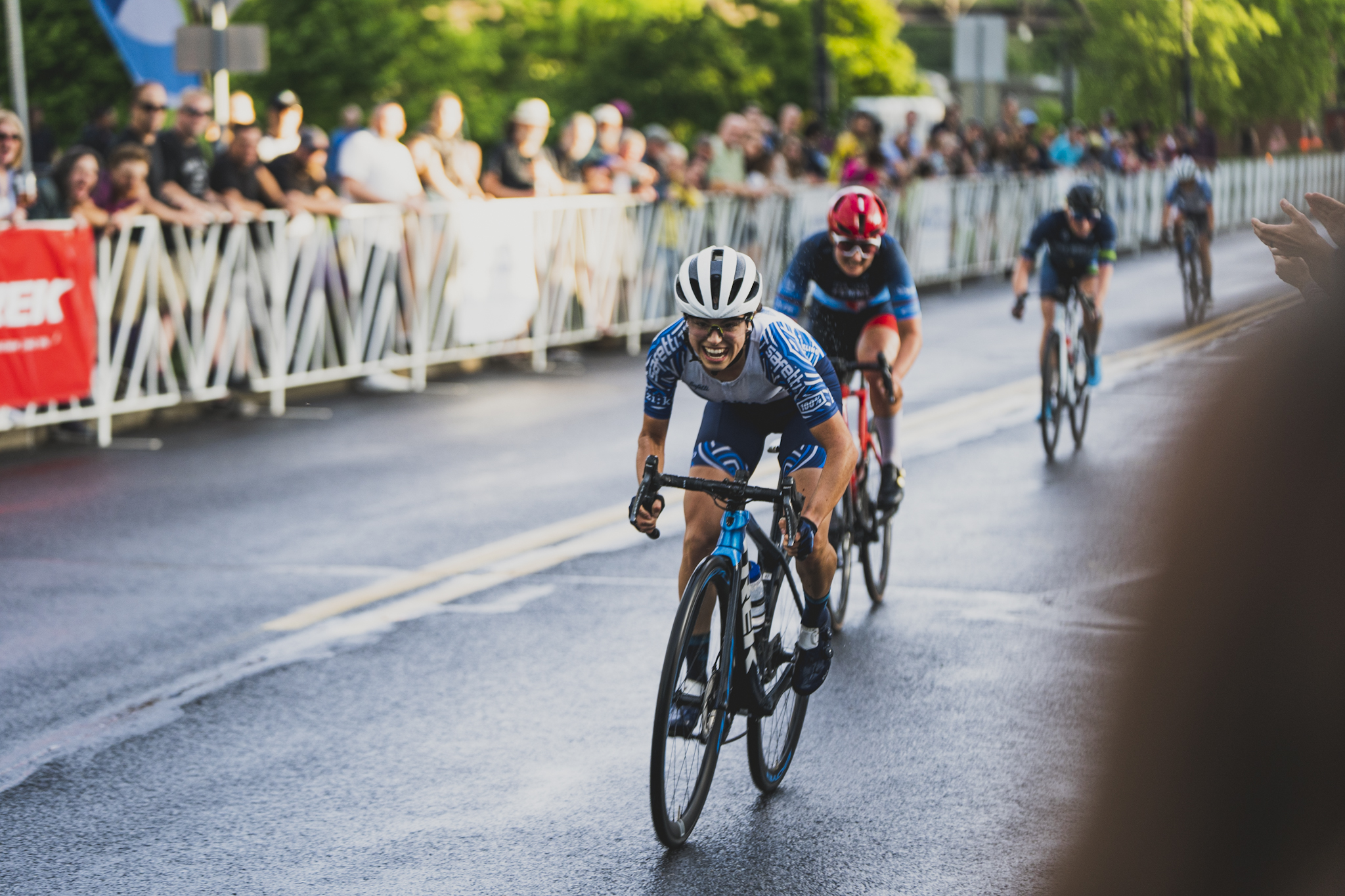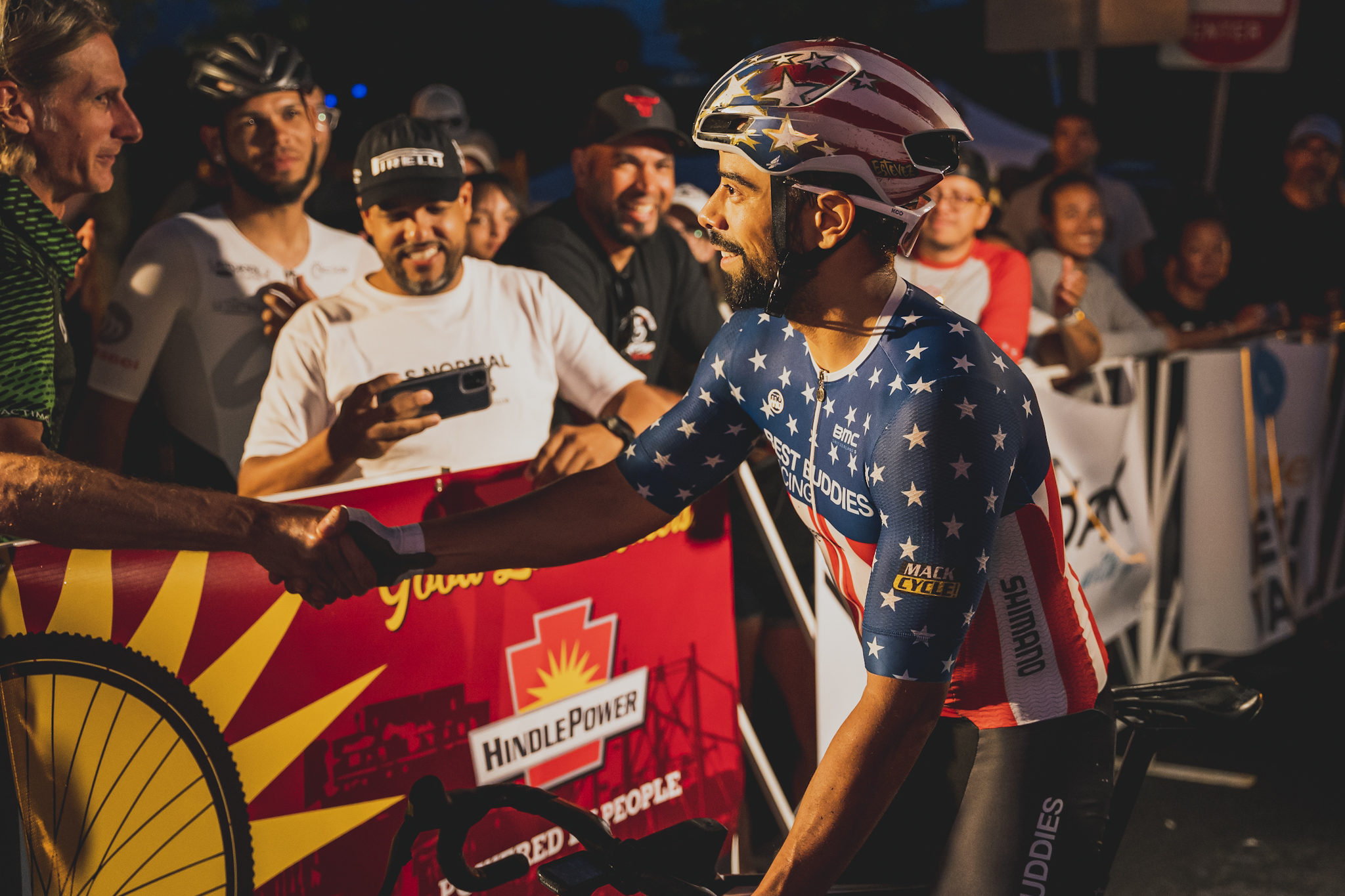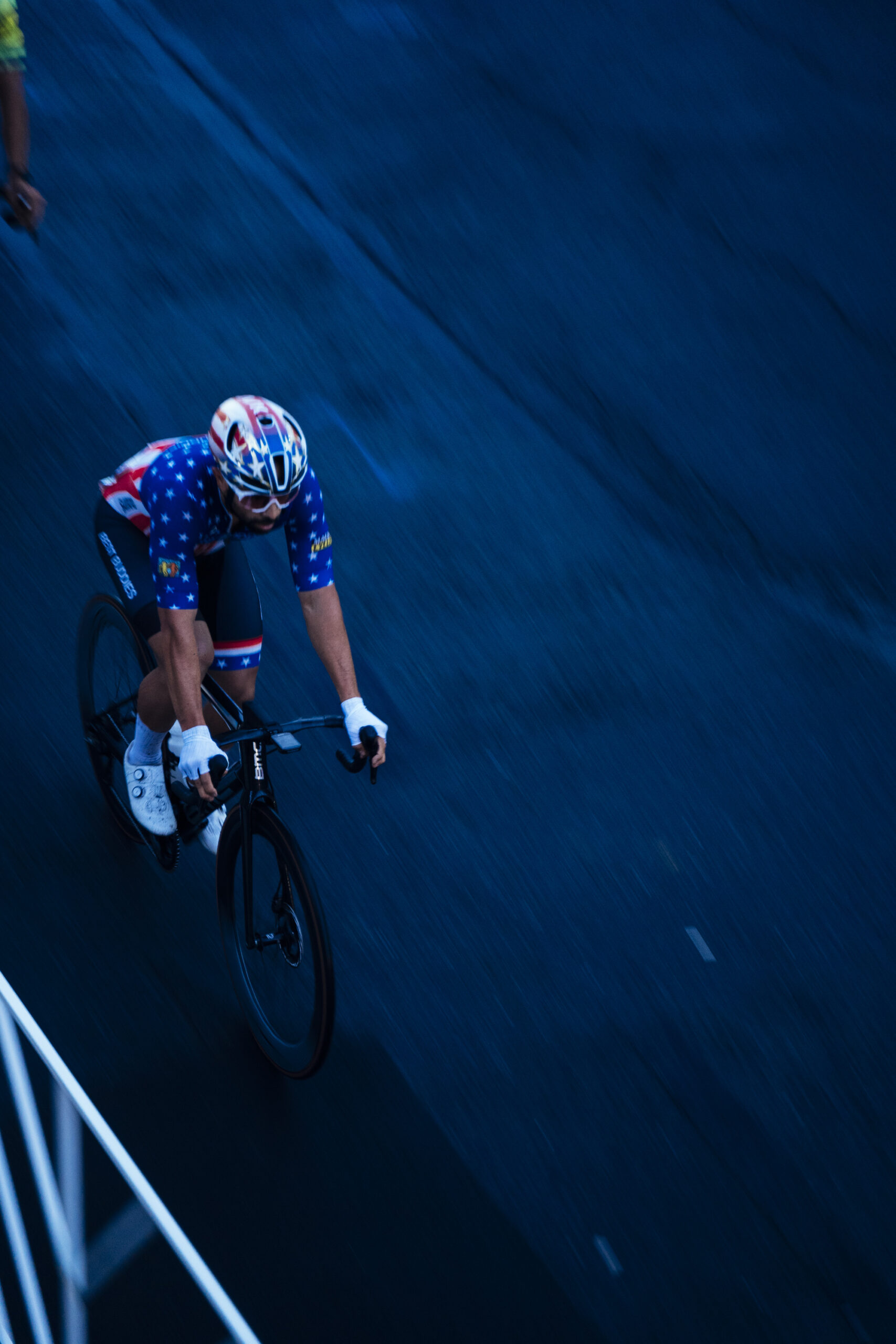 - Danny Estevez in the National Champion’s kit in the Easton Twilight Criterium. Photo by Vishrut Garg