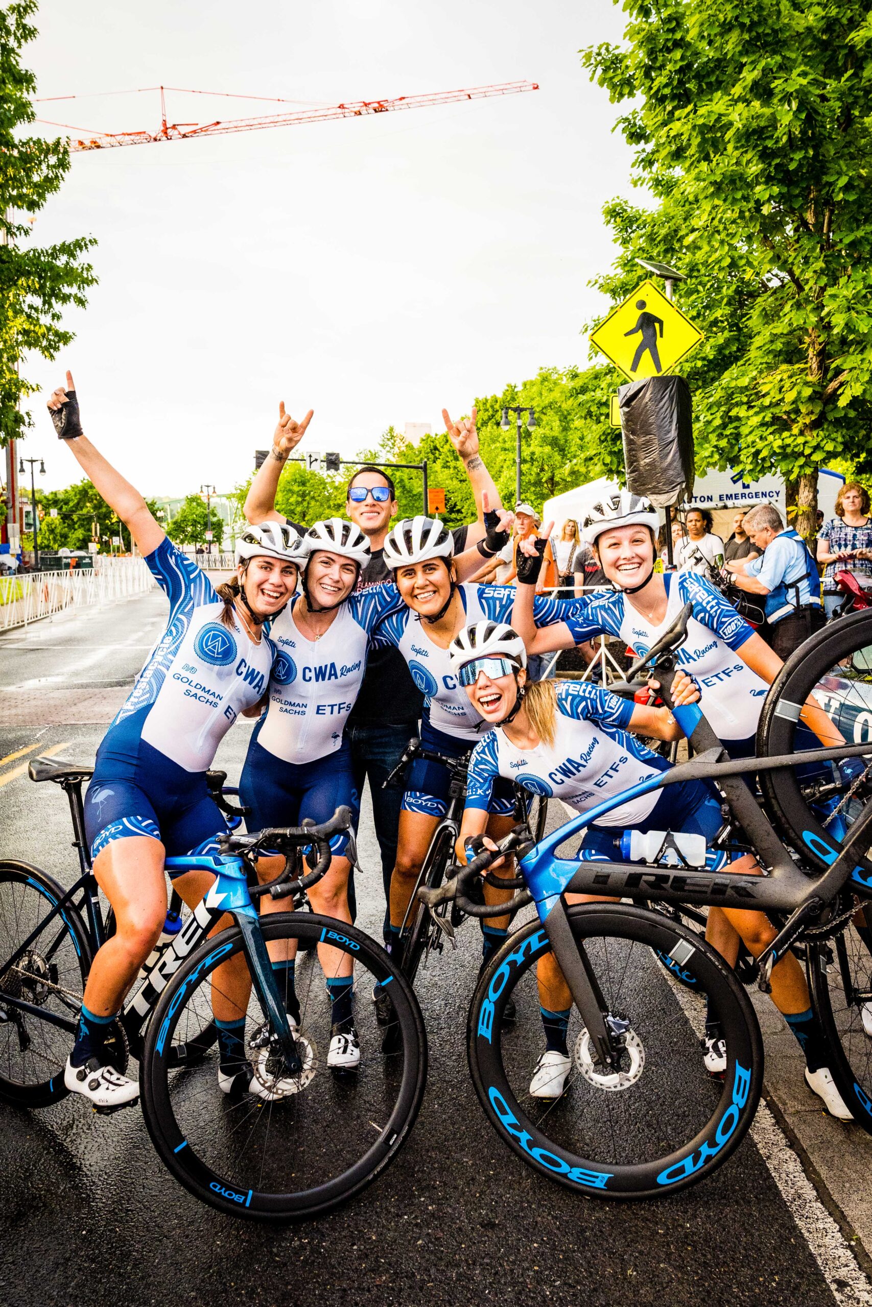 - CWA Racing pb Goldman Sachs ETFs celebrates their race win as a team. Photo by Gabe Lloyd