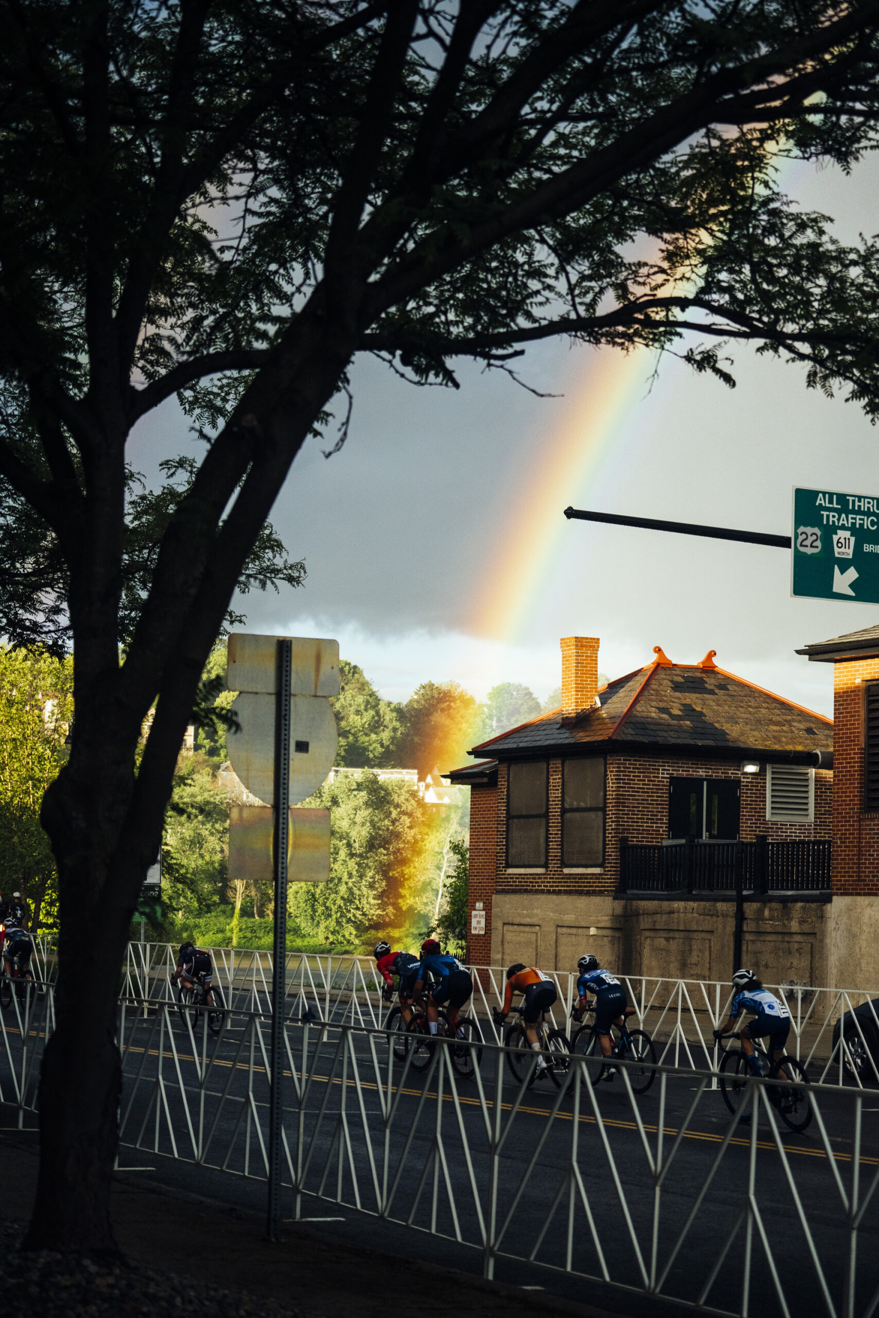 - Midway through the Pro Women’s race a double rainbow appeared! Photo by Trevor Raab