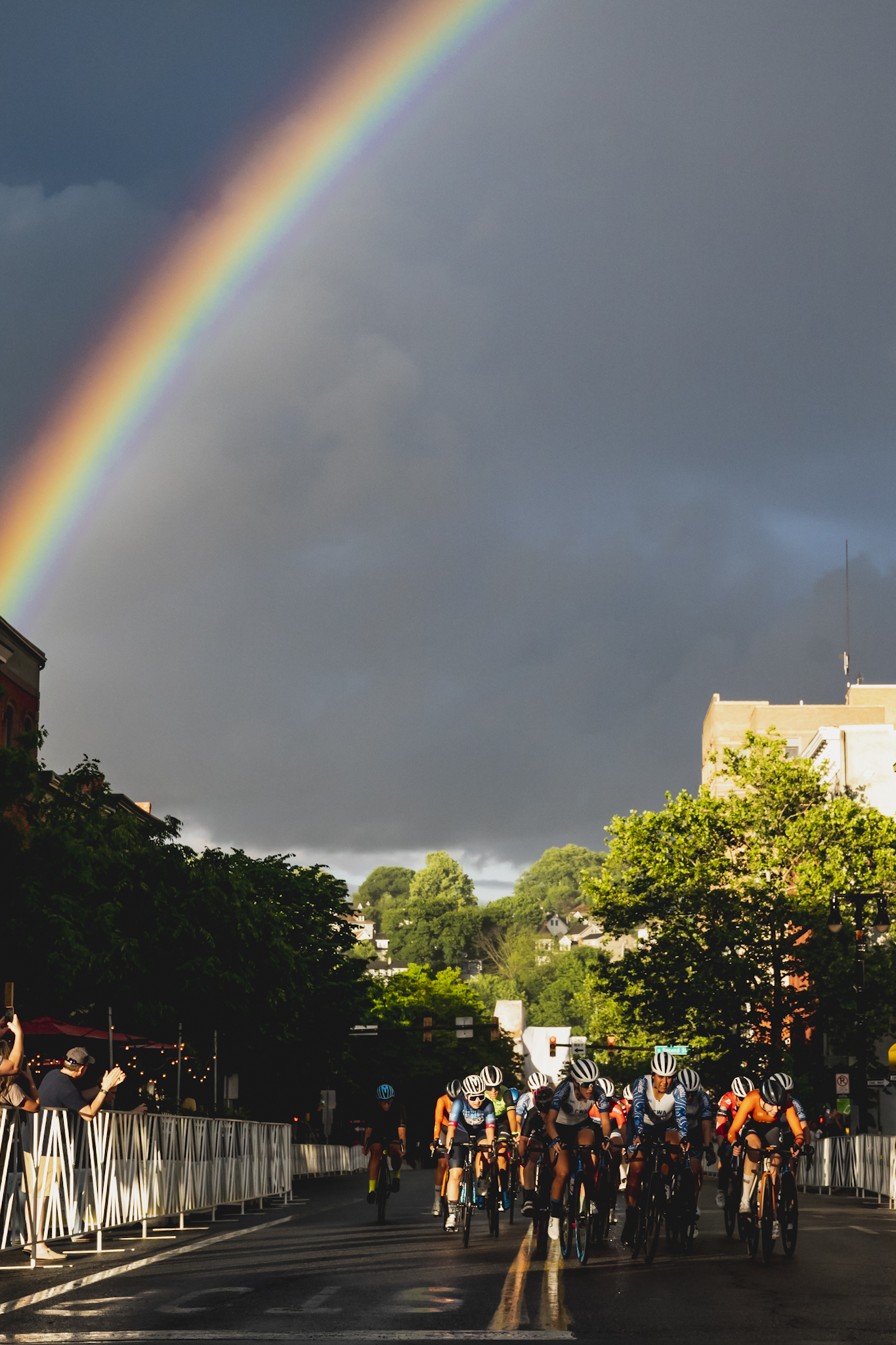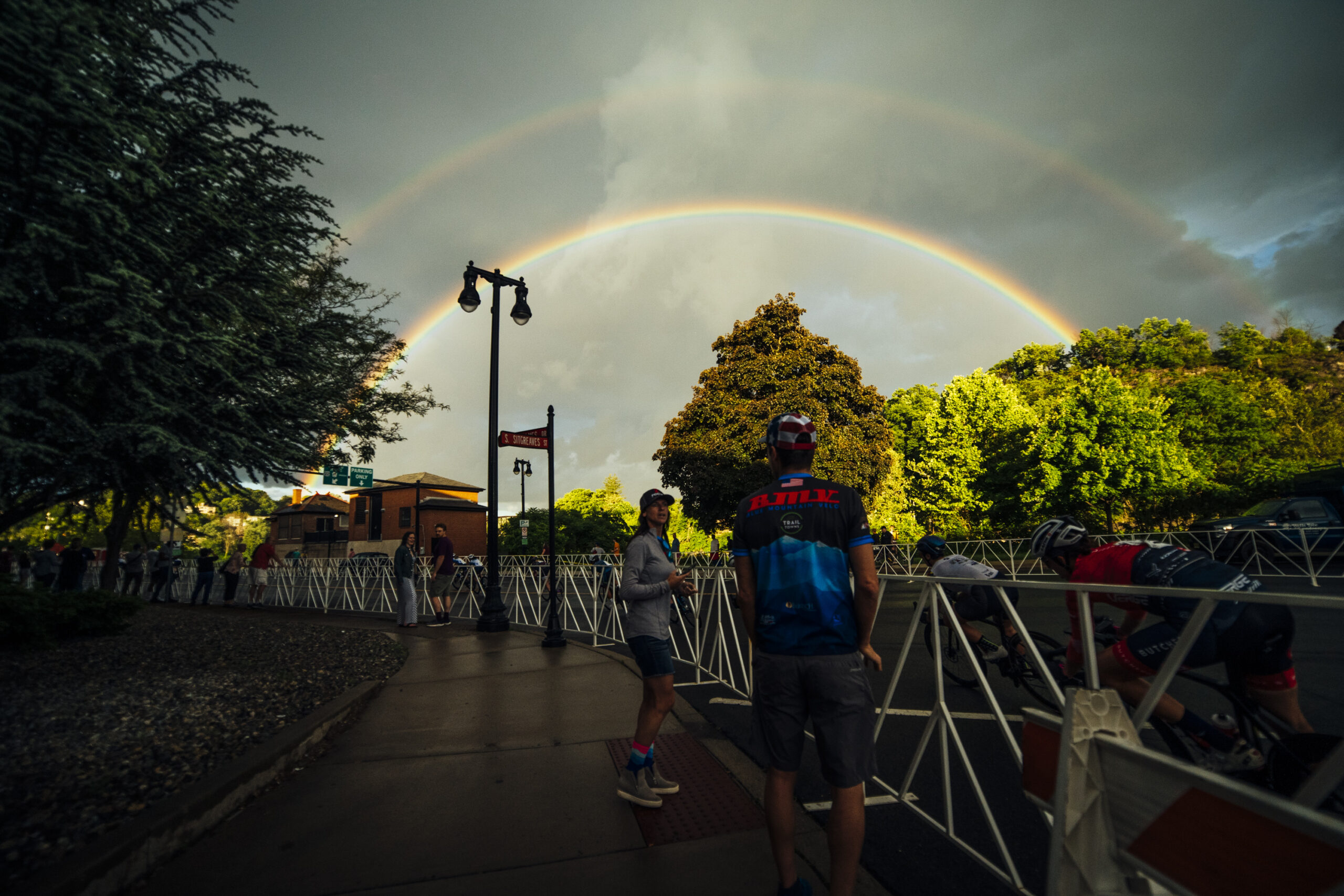 - Midway through the Pro Women’s race a double rainbow appeared! Photo by Vishrut Garg